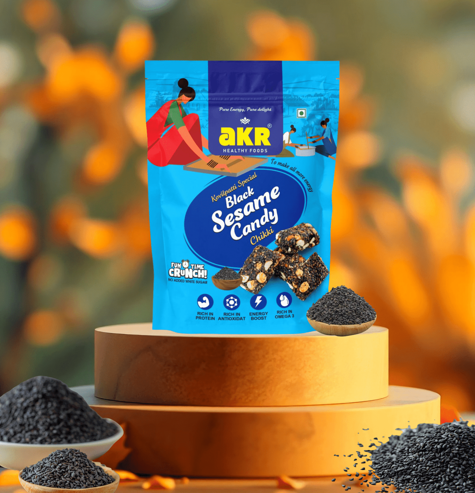 Discover the rich taste and health benefits of Elite Black Sesame Candy Zip from AKR Healthy Foods. Made with high-quality black sesame seeds and natural jaggery, this traditional sweet is a powerhouse of nutrients like iron, calcium, and essential minerals, offering a perfect blend of taste and health.