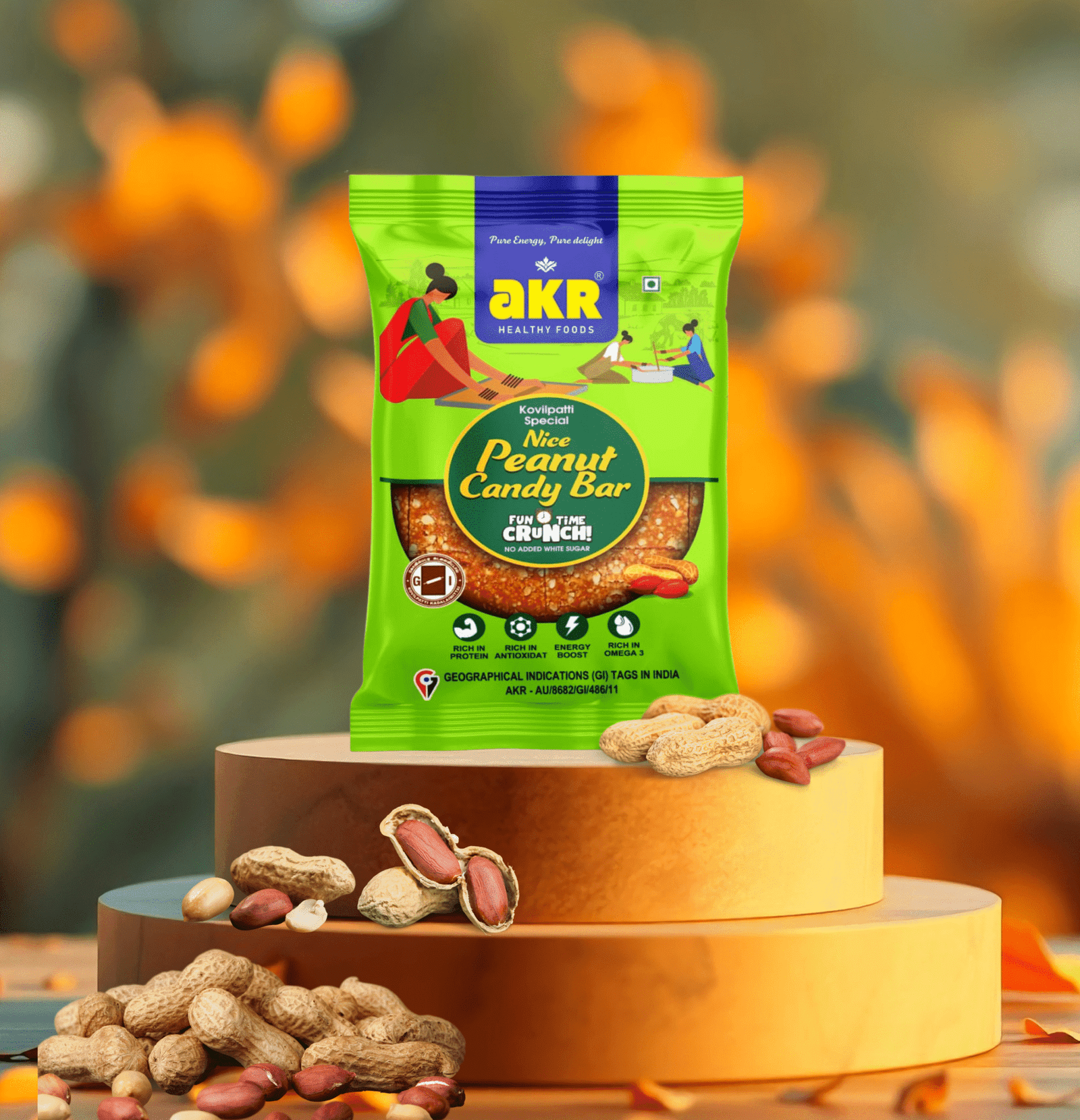 Discover the delicious and nutritious Nice Peanut Candy Bars by AKR HealthyFoods. Crafted with premium roasted peanuts and sweetened with pure palm jaggery, these bars offer a satisfying crunch and natural caramel-like sweetness. Packed with essential minerals and antioxidants, palm jaggery supports digestion and sustained energy release.
