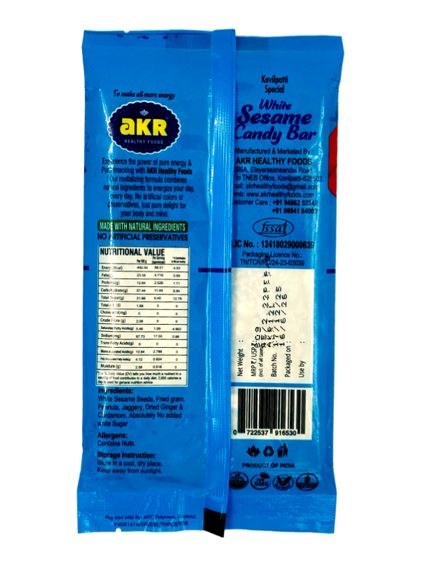 AKR Kovilpatti Special White Sesame Candy Bar — Pure Energy. Pure Delight. Pure India.